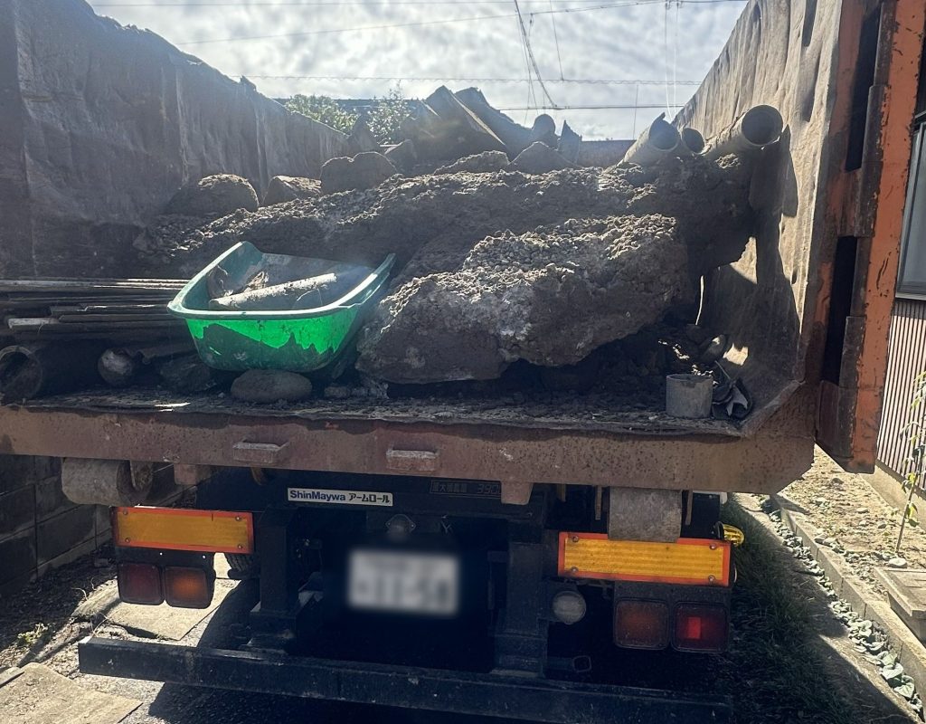 木造居宅+鉄骨造ガレージ計50坪以上、2階建ての解体工事